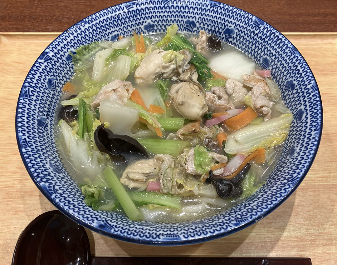 期間限定で牡蠣ちゃんぽんうどんというメニューがあったので、今回は少し奮発してこちらのうどんを野菜大盛りにして注文しました。